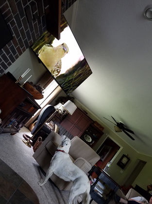 Sally Jane is the name of a dog belonging to my Grandfather, who lives in Iowa. She wandered onto his property and never left. This painting is a gift for him, and everyone who cares for her there.